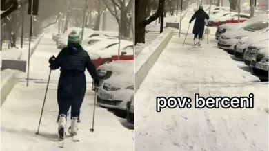 O femeie a decis să se bucure de zăpada depusă pe străzile din București. Aceasta a fost surprinsă în timp…