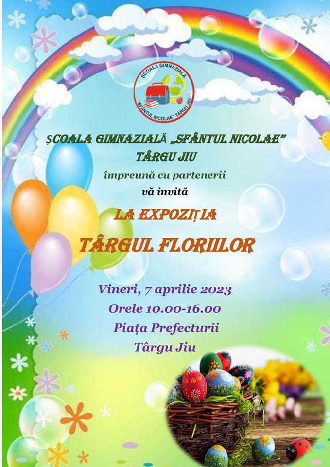 „Târgul Floriilor este un concurs de creativitate în urma căruia va avea loc și o expoziție a lucrărilor realizate de elevii școlii, dar și de elevii din școlile partenere din 4 județe (Vâlcea, Dolj, Hunedoara, Sibiu), pe tema Sărbătorilor Pascale. Vineri, 7 aprilie 2023, între orele 10.00-16.00, toate produsele jurizate vor fi expuse în centrul municipiului Târgu Jiu – Piața Prefecturii și vor putea fi achiziționate pentru o sumă simbolică, elevii dorind pe această cale să-și îndeplinească visul: „O STAȚIE RADIO în școala noastră!”, au transmis reprezentanţii Școlii Gimnaziale „Sfântul Nicolae” din Târgu Jiu.