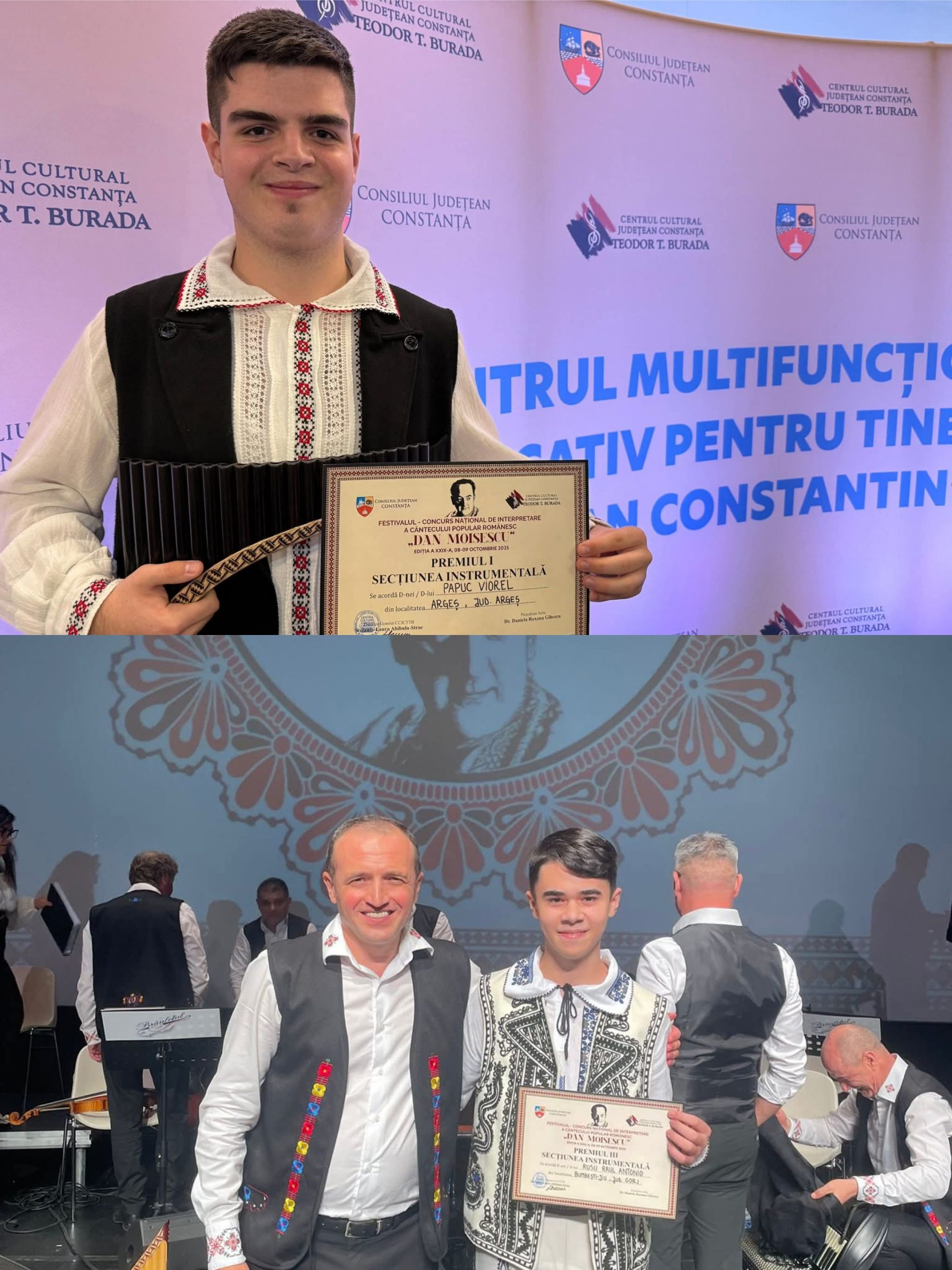 „Suntem mândri de acești tineri talentați care duc mai departe spiritul autentic al folclorului gorjenesc. Felicitări Viorel, Raul și profesorilor voștri pentru performanța obținută!”