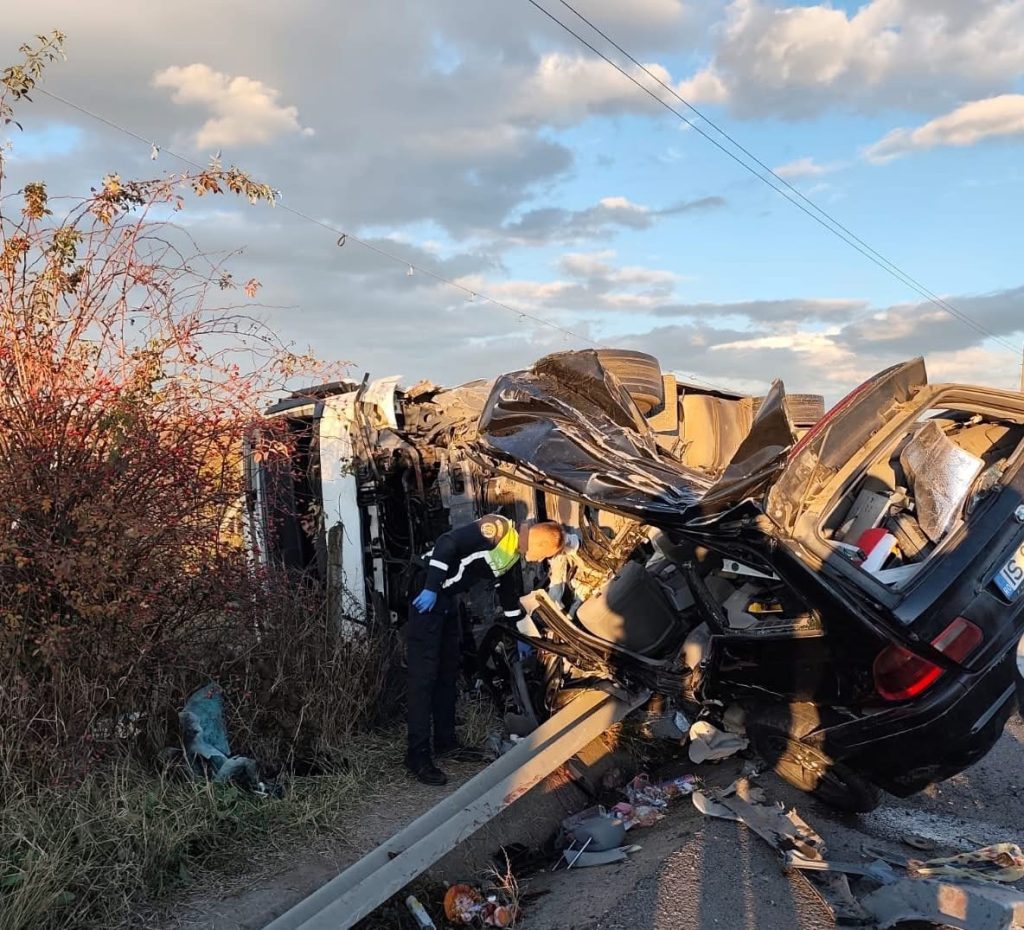 Un accident rutier cumplit a curmat astăzi două vieți pe un drum din județul Iași. Un autoturism în care se aflau două persoane a fost izbit violent de un TIR, într-un impact devastator care nu le-a mai lăsat nicio șansă pasagerilor din mașină.