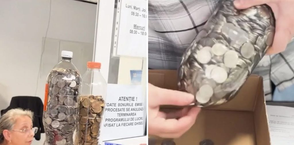 Un bărbat de lângă Gorj a mers să-și plătească taxele cu 3 kg de monede! FOTO