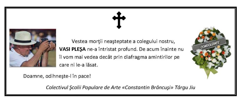 Tristul anunț a fost făcut de conducerea Școlii Populare de Arte Târgu Jiu.