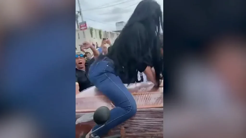 Potrivit articolului, scena ar fi avut loc în Ecuador, într-o înmormântare mediatizată la momentul respectiv. În timp ce sicriul era expus, femeia, îmbrăcată (aparent) într-o bluză neagră, ar fi dansat pe capacul coșciugului, gest care a stârnit un val de reacții pe rețelele sociale.