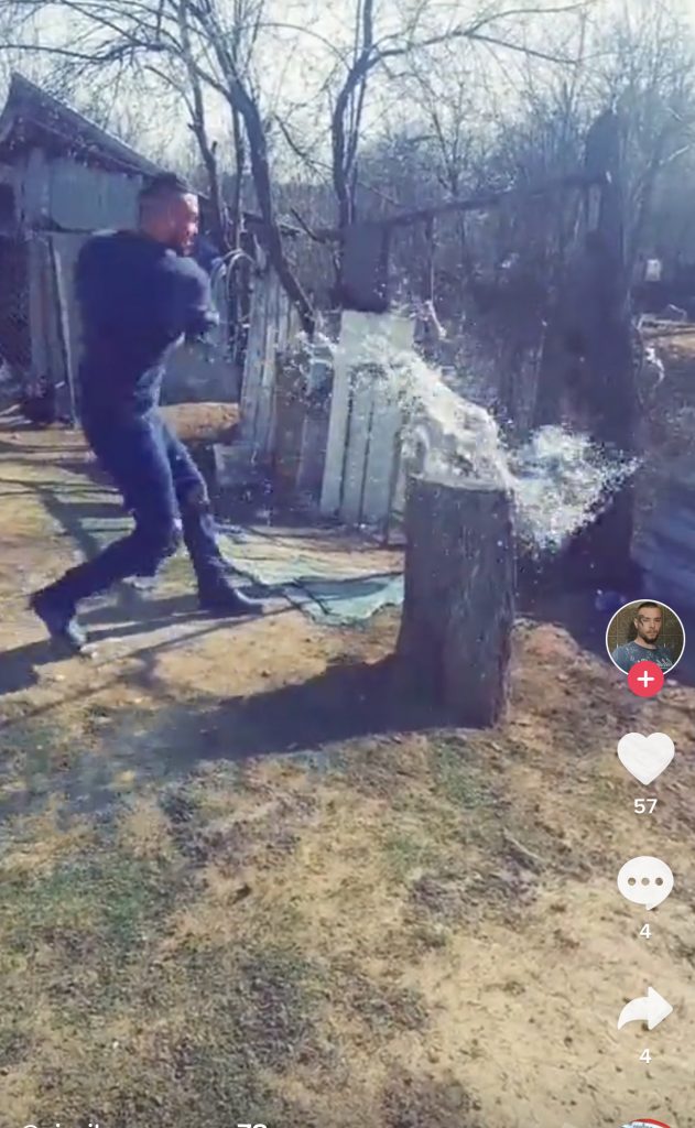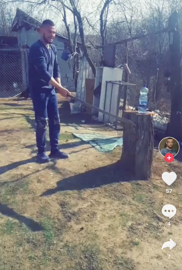 Pe TikTok bărbatul violent are publicate mai multe clipuri cu o sabie.