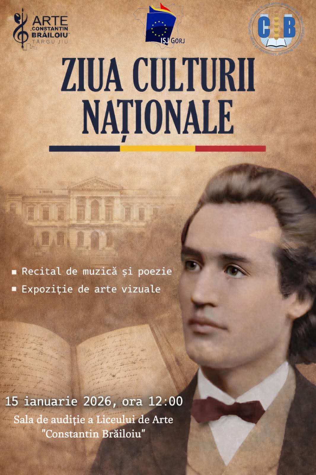 Liceul de Arte „Constantin Brăiloiu” din Târgu Jiu marchează Ziua Culturii Naționale printr-un eveniment artistic de amploare, organizat joi, 15 ianuarie 2026, de la ora 12:00, în sala de audiție a instituției.